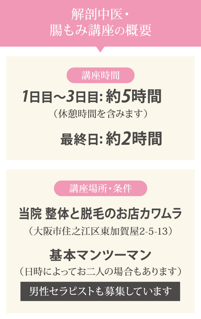 腸もみ講座 整体と脱毛のお店 カワムラ